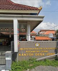 Jono merupakan salah satu wilayah yang berada di Kabupaten Gresik, Jawa Timur. Kawasan ini memiliki karakteristik lingkungan yang masih cukup asri namun tetap mengalami perkembangan signifikan dari tahun ke tahun. Secara administratif, wilayah ini termasuk dalam bagian dari Kabupaten Gresik, sebuah daerah yang dikenal sebagai kawasan industri sekaligus memiliki nilai sejarah dan religius yang kuat di Jawa Timur.